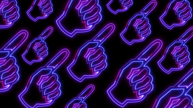 Human hand pointing finger in neon light style on dark background